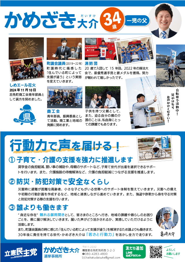 明日26日(火)、宇美町、篠栗町、新宮町の朝刊に、選挙運動用チラシを折り込みます。